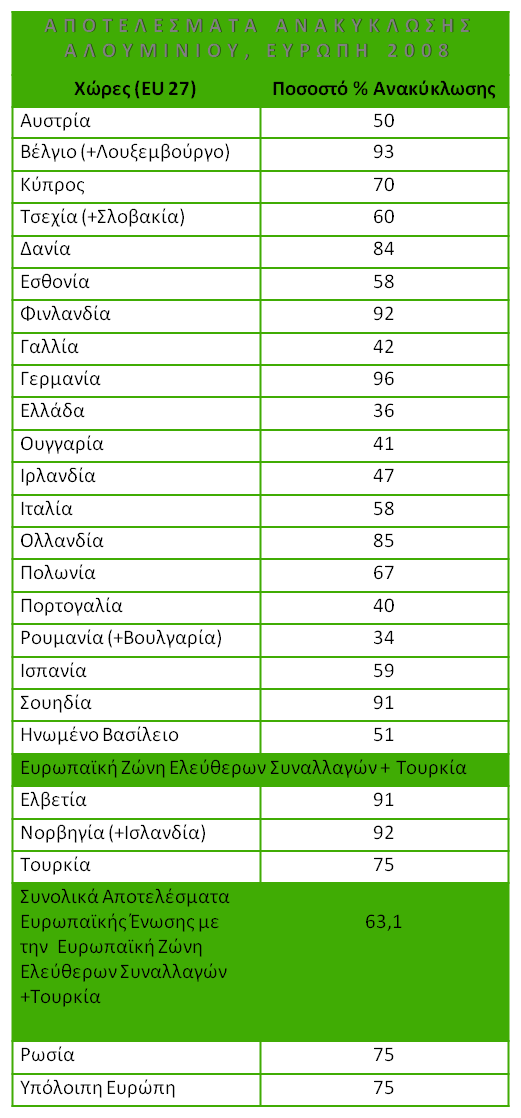- Πηγή: Ευρωπαϊκή Ένωση Αλουμινίου
